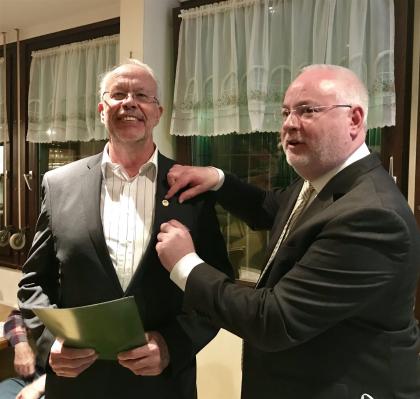 Anläßlich der Jahreshauptversammlung am 14. April konnte auch die Ehrung von Rudolf Danzer für seine 50-jährige Mitgliedschaft nachgeholt werden. Bei der Ehrungsmatinee im November konnte "Rudi" krankeitsbedingt nicht anwesend sein, so dass ihm die Goldene Ehrennadel erst jetzt vom Vorsitzenden Jörg Pöschl ans Revers geheftet werden konnte. Vielen Dank, Rudi, für Deine langjährige Treue und Verbundenheit zur TSG.