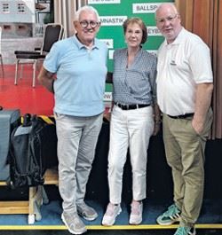 Helmut Reith (Präsident Turngau Feldberg) überreichte Heike Stein den Ehrenbrief des Turngau Feldberg für ihre langjährige verdienstvolle Übungsleitertätigkeit bei der TSG Falkenstein, rechts TSG-Vorsitzender Jörg Pöschl.