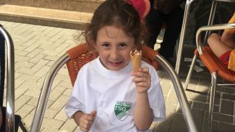Verdienter Lohn für Emilia Marques, eine unserer kleinsten TSG-Athleten, nach dem Benefizlauf am Sonntag in brütender Hitze!